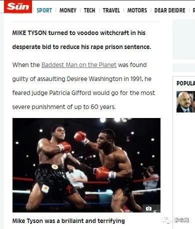 泰森曝出,1991年自己当年因为华盛顿强奸案而深受牢狱之灾,但自己担心法官Patricia Gifford对自己实施长达60年来的最严厉惩罚。万般无奈之下所以他求助了巫术,但效果收效甚微。