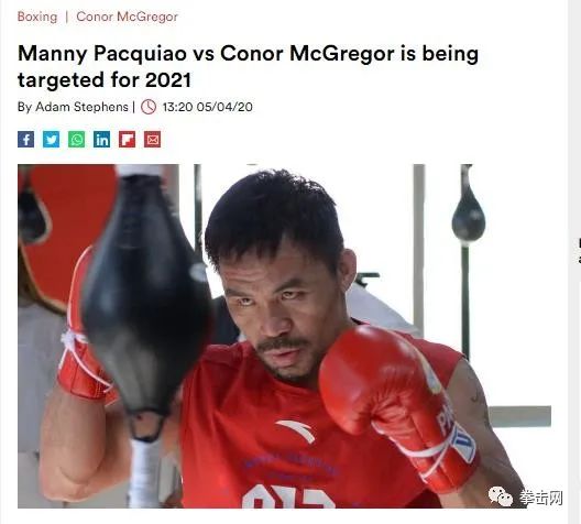 这位41岁的菲律宾拳击手自从去年7月在拉斯维加斯举行的WBA冠军赛中击败美国人瑟曼(Keith Thurman)以来,一直没有参加比赛。与此同时,麦格雷戈最近在1月的UFC比赛中第一回合(TKO)击败“牛仔”唐纳德(Donald)取得了令人印象深刻的大战。