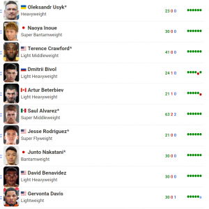 四大拳击组织冠军及前15名男拳手排名[2021年07月]