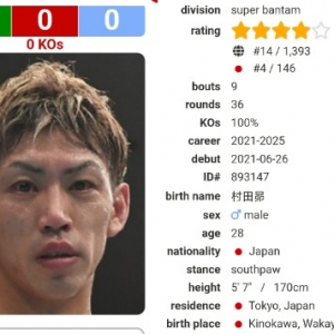 村田昴也是怪物 122磅排名第3 下町俊貴第2 井上第一 122磅世界职业拳手不到1400个 但日本就有140多个!