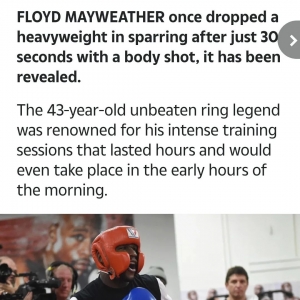 据透露,50场全胜的传奇拳王梅威瑟的前陪练德米特里·萨利塔(DmitriySalita)曝出,一次训练营来了一名踢馆重量级拳手,当时没有同级别拳手可以应战,梅老板亲自出战轻松30秒一记击腹拳就KO了对方。这位43岁的不败拳 ...