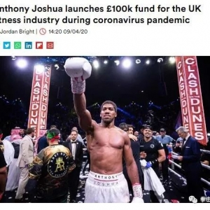 约书亚支付100000英镑帮助英国健身教练度过疫情