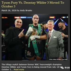 富里VS维尔德3推迟到10月举行但敲定仍是未知数