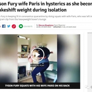 参加“互联网+臂力大赛”现WBC重量级拳王泰森·富里(TysonFury)目前在家自我隔离,隔离期间没有训练器械,富里就把妻子巴黎扛起来做深蹲,视频在个人社交媒体上公布后,拳迷纷纷对两人的恩爱表示了祝福。 &nb ...