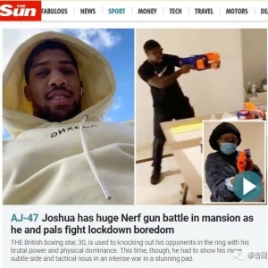 30岁的英国拳击明星/三冠王约书亚(AnthonyJoshua)在家自我隔离,在自己的豪宅中充分利用室内的一些额外空闲时间来举办了一场Nerf枪击游戏。并且把视频传到网上。约书亚在他令人惊叹的豪宅中与自己的好朋友展开了激 ...