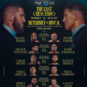 2025年2月22日,沙特利亚德王国体育场,各大推广商联合呈现,‘利亚德赛季’之“最后强音”开年首秀。在常规,即便其垫场赛,都可以成为头条主赛。老铁们不要错过。7.卡勒姆.史密斯 vs 约书亚.布阿西 (WBO轻重量级 ...