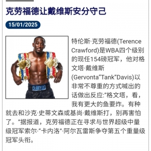 【新闻】克劳福德对戴维斯说,你要安分守己,有种找史蒂文森和尚基戴维斯打,我没空